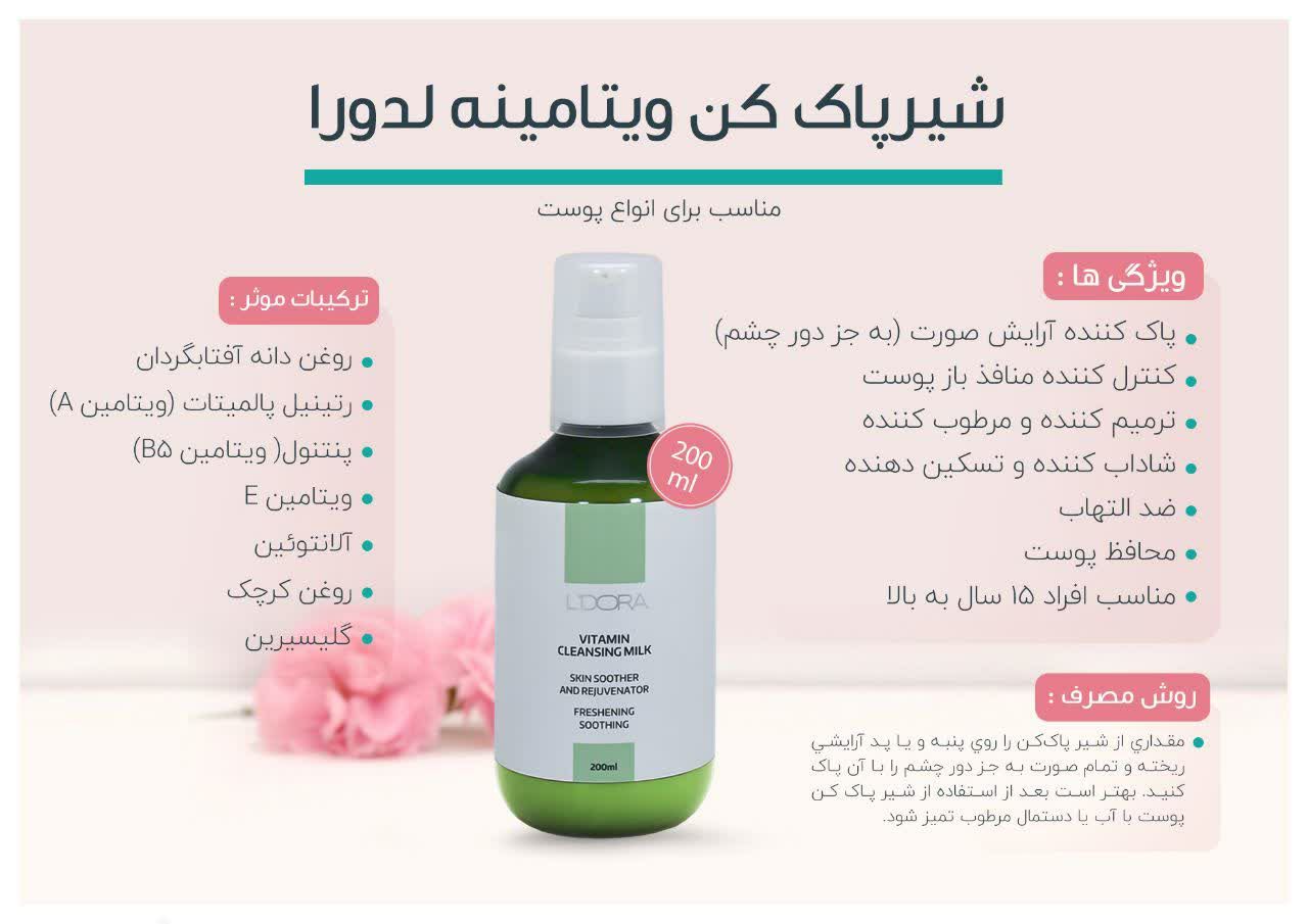 🟢 پاک کننده آرایش صورت (به جز دور چشم) ⚪ کنترل کننده منافذ باز پوست 🟢 ترمیم کننده و مرطوب کننده ⚪ شاداب کننده و تسکین دهنده ضد التهاب و محافظ پوست