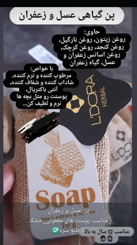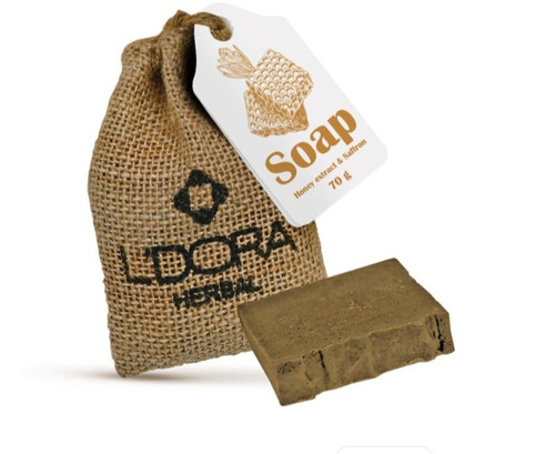 صابون گیاهی حاوی عصاره ی عسل و زعفران لدورا ۷۰ گرم مخصوص پوست نرمال و خشک جوانسازو شاداب کننده